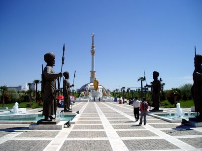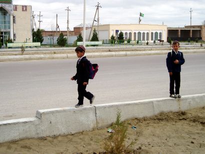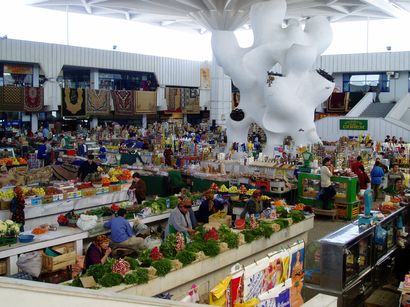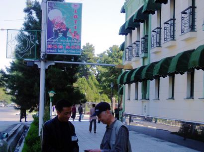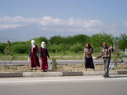 郊外の幹線に限らず街中でもヒッチハイクをするたくさんの人を見かけた。無駄なくお互い助け合うのは良い習慣だと思う。「ヒッチハイクはこの国でも若い女性には危険」とガイドは言っていたが、ホテルの窓から見ると退社時にはたくさんの女性が車を止めて、行き先を告げ交渉し、車に乗り込んでいた。もっとも、トロリーバスを含めたバスが走っている他、タクシーも1kmあたり1000マナットと安く数も多い。病院の行き来などに庶民の足としても気軽に使われているのを目撃した。道は埃っぽいが清潔だった。毎朝道路を掃除する女性達をここかしこで見かけた。これも大統領の政策の一つなのだろうか。 跡部さんは「トゥルクメニスタンはいい意味でのソ連色が残った数少ない国」というような意味のことをいっていた。しかし、この国の非効率さは日本の基準ではとても考えられない。まず出入国の手続きにそれぞれ1時間以上の時間を要した。一つ一つ手書きで同じような書類を何通も作成するほか、それをまた別の人がじっくり読み直して調べるといった調子である。買ったじゅうたんの輸出許可をもらいに行った時もそうだった。