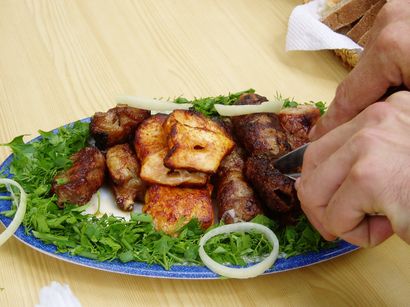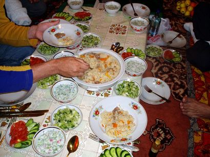 毎日生活に使っている部屋を空けて使わせてくれた上、これが彼らの日常食なのか、ピラフ、万頭、きゅうりの酢の物等など日本人の口に合うものを多数用意してくれた。 朝食の目玉焼きの卵は隣国イラクから山を越えて持ってくると言っていた。米は日本のものに近い味だった。口に合わないものは殆どなかった。 野菜を含めどれも量が多く一人分を二人で分けて十分なほどだったが、これも彼らの好意の表れかもしれないと感謝している。ただ、彼らは野菜にはドレッシングを使わない。生で食べる。マヨネーズでも持っていけばよかったと思った。