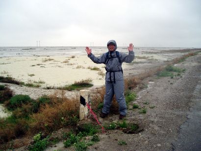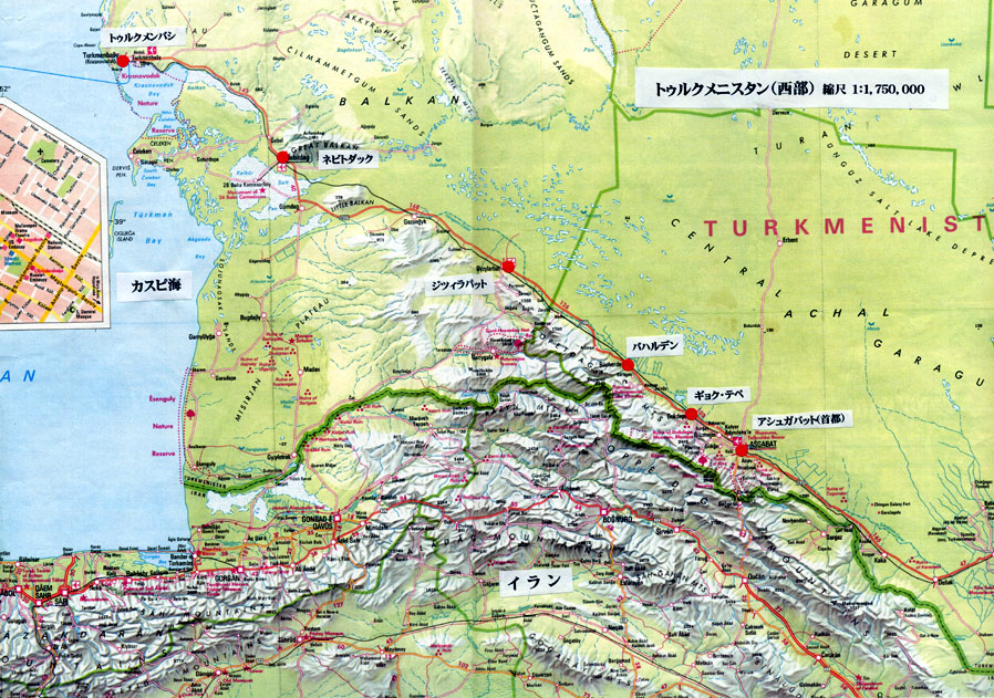て接続したとして受けたトゥルクメニスタンのカスピ海沿岸のトゥルクメンバシ/Turkmenbashyをスタート地点とした。 実際のスタート地は、フェリー港の上部にある国道M37から歩きだした。