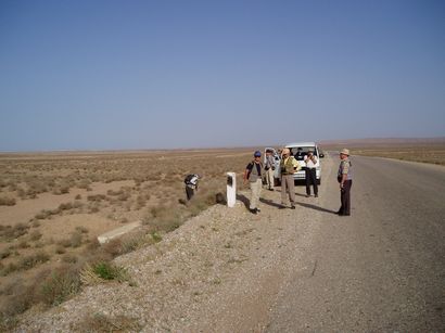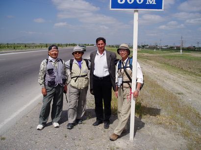 歩いた感想 中村 文広(5期) ウズベキスタンなどでは歩行中ずいぶん道草を食ったと聞いたが、トゥルクメニスタンではただ歩く以外、時間を使う所もなかった。昼食もそこそこにすぐに歩き出すという風だった。今までの地域にように人の住む村落は殆ど途中になく、眺めるような景色もなかった。暑いか寒いか、とても快適とはいえない気象条件では、変化の乏しい道をただひたすら歩き、早く目的地に着くことだけに関心が集まった感があったのは致し方ないことであろう。中国西部を含めこれからの歩行は益々こういう感じになるのではないかと思われた。