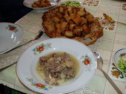 隣は屠殺場で、私たちのために羊を一頭解体してみせてくれた。 夜、綾部さんの誕生祝をささやかに実施した。 | 観光 | くもり 気温12時13.4℃ | ジツイラバットの民宿泊 |