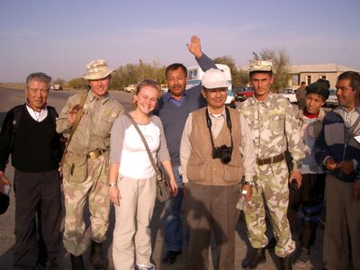 |  トルクメ国境にて、 通訳兼ガイドのイネッサさんと