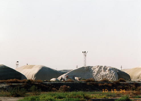 通訳・イネッサ夫人の話では、綿花の栽培は地力を奪い、塩害も進行させているとのことでした。 最近では、綿花栽培は3年に1回とし、残りの2年は小麦や野菜を作るようにという方針が出ているそうです。ただ、綿花が金になることから、あまり守られていないとのこと。また、塩害は私たちが歩いたところでも、土の表面が白くなっていて、草も生えないところを見受けました。 灌漑が、表土層の下の岩塩を吸い上げてしまうようです。本来は、少ない雨を利用した農業が、この地域には適しているのでしょう。