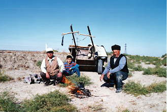 | 2 | 03.11.1 (土) | カザフスタン国境・チェルニャェフカから歩行開始 タシケント先69Kmまで進んだ。夜、エルビーラさん・イネッサさんの通訳で、距離計が故障した車の交換を旅行社が約束。通訳への支払についてもほぼ合意した。 |