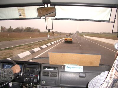 通訳の必死の要請、ウズベキのポリスの援護に別の係官が出てきてOKを出してくれてほっとする。国境の先にあるバザール付近は怪しい人間も多いので立ち寄らないようにとのアドバイスもあり第2班はひたすら道を急ぎ無事通過する。 この日のパトカーは市、州ごとに交代(計4回)して最後ホテルまで伴走して帰った。