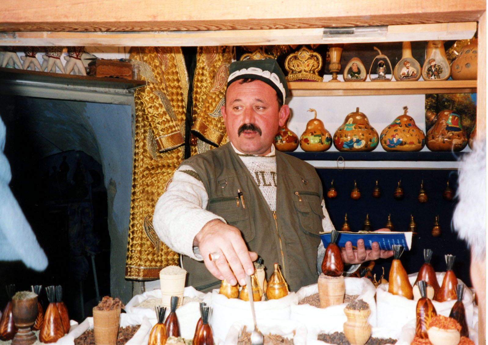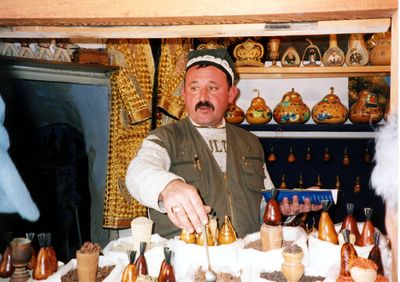 所々にバザールという市場があり、上記食材、香辛料、ドライフルーツ、シルク製 品、絨毯、陶器、人形、・・があり、値段交渉を楽しみました。値段を聞いて、半値