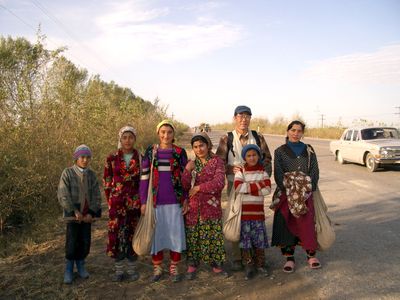 カザフスタンでは女性が我々に手を振ることはなかったが、ここでは違った。言葉が通じないながらも、そのまま歓迎の気持ちを表現する人々には親近感を感じた。 そんなことと関係するのだろう、今回ほど多くの人々との出会いを感じ、それを写真に残した旅はない。 ウズベキの人たちからみると、変わった連中が歩いているということで興味津々だったろう。それと、めったに写真を撮るということがないため、撮られるだけで嬉しいのだろうという感じさえした。その一部をここに、ウズベキの人々ということで、記録に残した。