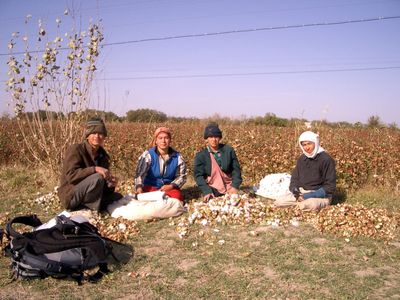 気がします。国はシリダリア川とアムダリア川に挟まれ、灌漑水路が縦横に走り、 広大な綿花畑の国でした。 機械で綿花を摘み、取りきれないものを人手で取る