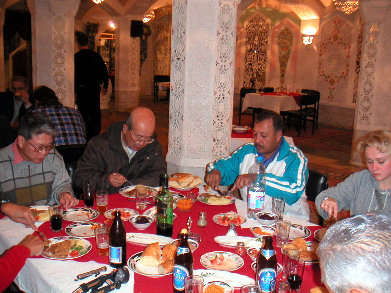 彼女の配慮で夕食は肉や野菜を適当に組み合わせ味覚の点でも質の高いものであった。休養日についても彼女のガイドで満足いく観光が出来た。日本語で意思疎通が出来たことは今回の歩行においてメンバーの精神面での安定にかなり有効であったと思う。 次のトルクメニスタン歩行に関連しての情報収集についても協力をお願いしておいた。