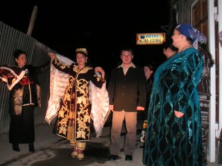 一緒に踊り、興に乗って他の客や店の人も一緒に踊り、大いに盛り上がりました。 仲間で炭坑節を踊り、拍手喝采を浴びました。 今回はシルクロードを歩きましたが、当時ラクダを連ねた隊商が泊まった宿の