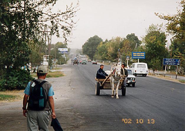 | 3 | 02.10.13 (日) | ホテル発/8:50、Shymkentの先まで3Gに分かれ歩行、ホテル着/17:00、旅行会社と料金折衝 | 75 km | 晴/雷雨 | Shymkent Kema Hotel | |||||||||||||||||||||||||||||||||||||||||||||||||||||||||||||||||||||||
