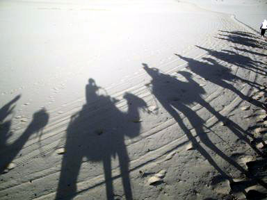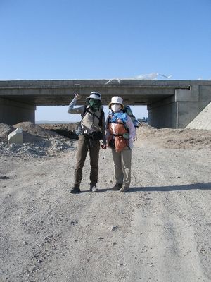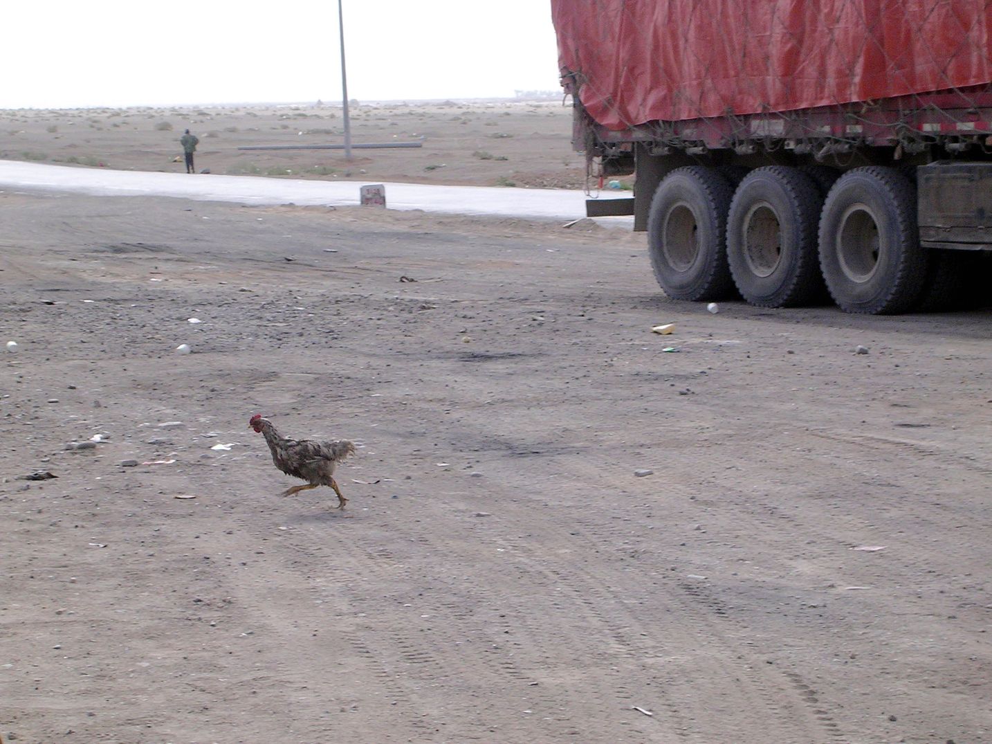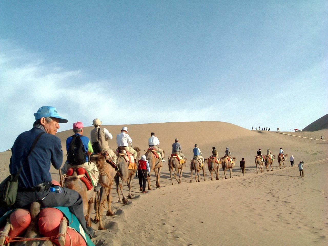 下痢を防ぐため生野菜と水には細心の注意を払った。歩行初日に少し腹を壊したものが出たが大事には至らず。到着翌朝のトマトが原因ではないかとの推測で、以後注意した。それ以降、腹を壊したとの報告はなし。冷たいビールが手に入らなかったのも結果として良かった。疲れた時の飲みすぎは体調を壊す元になるが、その制限は難しかった。各自の自主性に委ねた。 歩けない人は出なかったが、まめは普段歩き慣れて自信を持っている人でも出来て苦労をしたようだ。道の状況か靴下の具合か、いずれにせよ行動に大きな影響が出るのでまめを作らないこと、出来たまめを的確に治療することについて、いま少し研究と指導が必要であると痛感した。初日はペースが速くなりがちだが、速度とまめの発生にも、ある相関があるようにも思えた。 今回の特殊要因として悪路の長時間の移動をよぎなくされた結果、車酔いと体調不良者一名が出たが、一晩安静にして回復し、事なきを得た。その他、砂漠の強い直射日光で目以上に下唇をやられる人が多かった。リップクリーム、メンタムなど用意したい。 珍しいこととしては、砂漠で蜂の群れに襲われた班があった。ミツバチで良かったが、刺された本人はかなりの痛さでパニックに陥ったようだ。にんにくを付けたら腫れが引いたとか。毎日少数の蜂は顔の周りを飛び回ったが、この程度なら構わなければいなくなる。 安全面については公安の車に呼び止められたこともなく、住民、工事関係者とも終始好意的で全く不安を感じなかった。少ない出会いの中ではあったが、交流も行われた。 | ||||||||||||||||||||||||||||||||||||||||||||||||||||||||||||||||||||||||||||||||||||||