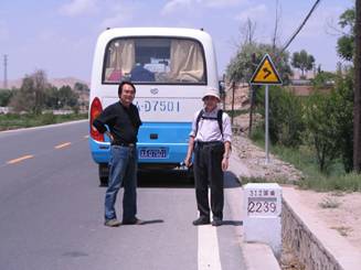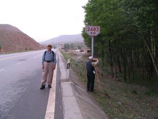 今回の歩行コース 2006年10月に歩き終わった甘粛省の河西回廊の東端の町「古浪」から歩き始めた。今回も国道312号を全て歩く。一部312号が高速道路扱いになっていたため歩行ができず、旧道を歩いた。 初日いきなり1000mの上りで、海抜3000mの峠「烏鞘嶺」を超える。この辺から黄土高原と言われる地域に入り、甘粛省の省都「蘭州」の手前で黄河を渡る。蘭州までは、やや下り気味の平坦な道であった。蘭州の町は海抜1510mの工業都市で、黄河沿いの道は分かり易かった。 後半は、中小の集落が点在する田園地帯で、200〜300mを上り、トンネルをくぐって下り、町にでる道路パターンを3回繰り返した。途中一旦、寧夏回族自治区を通過して、再度甘粛省に戻った。途中1箇所のトンネル内は歩行できず、この部分は歩きをカットした。 終着地は、今回の目的地である甘粛省の東の主要都市である「平凉」である。西安までは300kmで平坦な町が続いている(彬県の先は坂を上ってトンネルをくぐるところがあるが)。今回の歩行距離は554kmあった。 今回の歩き方 従来の中央アジア・中国の歩きと同じで、ガイド(日本語)と伴走車をつけて歩いた。メンバーが8名なので2名ずつ4班に分けて歩いた(初日だけは3班でナビゲーター係りをつけた)。歩行初日は上り道があったので歩行距離を調整したが、2日目から5日目までは、25kmを1班、20kmを3班で歩き、以降は20kmのみで、7、8日目は残り距離を調整しつつ歩いた。 帰国まで 6月7日