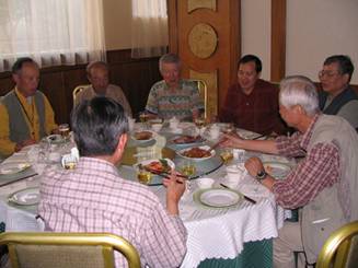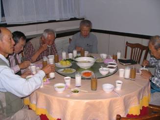 食べ物・酒・その他 朝食はホテルで、中華のバイキング又は中華の皿盛料理。昼食は持参食と食堂でのうどんなどが主になった。夕食は四川料理とイスラム系の清真料理。酒はビールがほとんど、時に白酒を飲んだ。 |