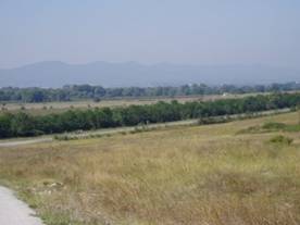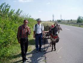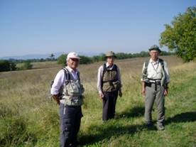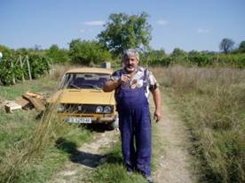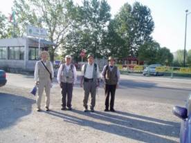 (いよいよ歩行開始、第四日目)今日は9月22日土曜日。ハスコヴォのバス停にいる客引きの誘いに乗り、10ユーロで、15Kmほど先の今日の歩き出し地点のストイコヴァへタクシーで向う。第一班の川田、中村はここからハスコヴォに戻り、篠崎、斉藤篤の二人はハルマンリまで歩いて、そこからバスで戻るのが歩行第一日目の計画。ようやくブルガリアの大地に朝日の差し込む中、二組は東西に分かれた。