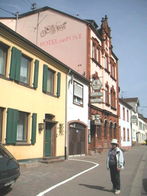 4.28 小雨時々曇、風強し。28,300歩 ルクセンブルグ−(DB)−>メトゥラッハ−(歩く)−>フェルメルスドルフ−(DB)−>メトゥラッハ 鉄道で昨日予約した宿まで行き、荷物をおいて歩く。きれいな家や庭を観賞しながらの歩きは楽しい。 川沿いに立派な自転車道があるが寒くて、国道を歩く。 おまけに入ったレストランのスープが塩辛く、苦労した。 というのは喉が乾く、水を飲む、寒い、トイレへ行きたい、場所がない。 その後、スープの注文は控えた。雨でもあり先が見えてきたので、早々に鉄道の駅から帰る。 無人駅はどう捜しても券売機がない。検札が来たらどう言うか考える事にした。 駅中央の待合い室にいる若者にサインを貰いに行ってきた。 すると妻はおばあさんと話をしている。でも、そばに行くと、おばあさんが一方的に話をしており、困惑している。 助けたいがドイツ語が分からず、お手上げで列車の来るのを待つのみでした。 結局、検札は来ずに只で乗れた。あろう事にあのおばあさんも同じ駅で降りた。 |