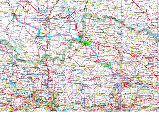 出発地 Prachtich(プラハティチェ) 到着地 Krems (クレムス) |