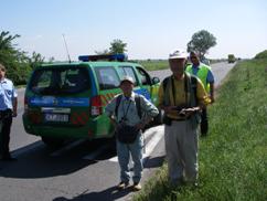 突然、目の前に警察の車が停車し、日焼けした男からパスポートの提示を求められた。早速、ハンガリー語で書かれた「歩行説明書」を見せる。