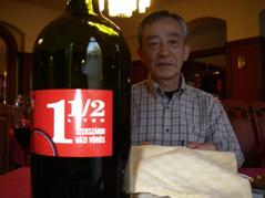 マコ(ルーマニア国境に近い小さな町、パプリカ、タマネギの産地)にはレストランが2件しかない。店内は広い、テ―ブルがユッタリ15くらい。キビキビした、愛想のいい女性が英語で対応してくれる。飲み物はビールと赤ワインを頼む。ワインはボトルにする。何と出てきたボトルは1.5リットル(Szekszardの赤)。このサイズしかないのだ。不満な顔は見せかけで、うれしさを抑えきれない。味はいける。池辺さんは下戸、森さんはやや下戸、上戸の篠崎と斎藤2名であける。歩行1日目の翌日、朝起きると、やや2日酔いで気分すぐれない。