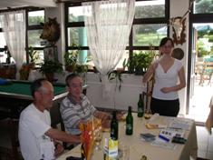 夜は2軒あるレストランのもう一方へ足を運ぶ。時間が早いせいか、客が誰もいない。ワインは若い娘が薦める“セクサールド”にしたら、なんと巨大な1.5リットル瓶が出てきた。これには一同にんまり、味も上々だった。料理は、前夜の経験から2人前を4人でシアーすることとし、それでも量的に満足した。