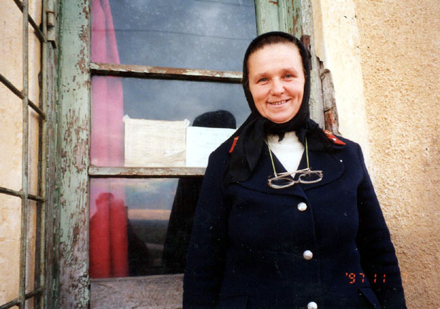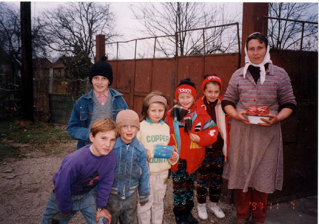 ![]() <ハンガリーとルーマニアの国境、ナドラク側。 ここが今回の出発地。和田(3期)> | ![]() <イグレスの家に帰るというおばさんに 道案内をしてもらう。> |
