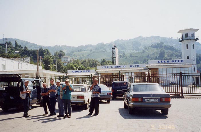 26ラリ、約500円)とトマトサラダ、チーズで前途を祝す。ホテルはL−VAKURI。こじんまりとしてこぎれいなホテルだ。部屋の中はマアマアだが、バスタブには栓が無く湯温も低い。 夕食はホテルの食堂で全員一緒に取る。 <写真>グルジア〜トルコ国境 グルジア側から |