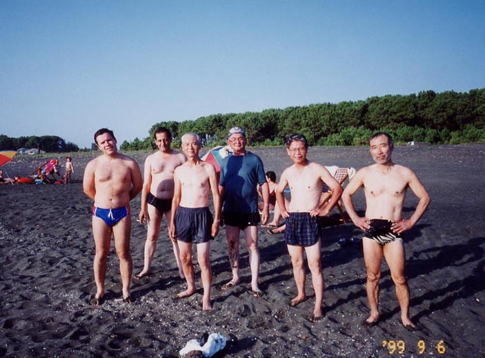 ドイツで法律を学んでいる由。住宅の間を抜けて1本左側の黒海沿の道に入る。 海岸ではかなりの人達が海水浴を楽しんでいた。 海岸沿にはかなりのレストランが並んでおり、中にはヤシの葉を編んだような小屋も有り、トロピカルな感じを出している物も有る。そんな中の1軒で昼食をとる。ビールは通じたがその他はまるで通じず、ついに料理の材料を持ってきてくれ、手振り身振りで何とか注文をして食べる事が出来た。Koboletiを出ると今日2回目の検問有り。特に問題なく通過。ここまでは比較的立派な並木道で木陰を歩く事が出来たが,これから先は滑走路のような道を汗をダラダラ流しながら歩く羽目となる。右側は畑が続き、左側は低い潅木が有りその奥は時折農家が有るようだが見通しは利かない。大型バスや乗用車が時折疾走して行く。 17:00漸く今日の終点Urekiへの分岐点に到着。背中のザックは白く塩を吹いている。ここから車で黒海沿いの宿へ運んでもらう。 宿は松林の中に貸し別荘のような形で、2階建ての建物が何軒か離れて建っている。その内の一軒が今夜の我々の宿泊場所となる。建物から10メートルほどの所が海岸で、プライベートビーチのようになっている。そこでは数パーティーが海水浴を楽しんでいた。日もまだ高いので我々も汗を流す事を兼ねて海水浴を楽しむ。水はさほど冷たくなくやはり少し塩っぱい味がした。 借りてきた通信衛星利用の携帯電話を東京にかけるが上手く通じない。 20:10 夕食は別棟の食堂で取る。夜中に雷雨があった。 |
