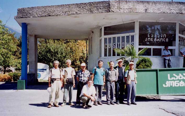 14:00 国境。100m程手前から全員でゲートまで歩く。許しを得て税関前で写真をとる。 トルコ側と異なりそれほど重々しい雰囲気はなく往来もあまり無いのか静かな国境だった。趣旨を話し職員にサインを貰う。 14:30 少し戻った所で遅い昼食をとる。成功を祝し生ビールで乾杯。焼き肉が美味しい。帰りの車では殆ど全員が居眠りをする。 全行程無事に終了し安堵感が車内に漂う。 18:00ホテル帰着。 19:00 川沿いのレストランで夕食。 フライドポテト、マッシュルームのクリーム煮、ステーキを頼んだが、出来たステーキは薄い肉のから揚げのような物で唖然とした。 これで75$ということなので二度驚く。今日でユーリ運転手ともお別れとなるのでチャーター料を清算し、チップとして30$払う。 とてもいいおじさんだったと感謝する。 オレッグとギアはモスクワからボスが来るとの事で空港に迎えに行き、我々だけでホテルに帰る。 ホテルでユーリと別れる。一人一人抱き合って別れの挨拶をする。彼の家はKutaisi、明朝帰る由。 ホテル近くのスーパーでワインとオレンジを買う。赤5ラリ、白6ラリ、オレンジ6個1.7ラリとは安い。ホテルで再度祝杯をあげる。 |