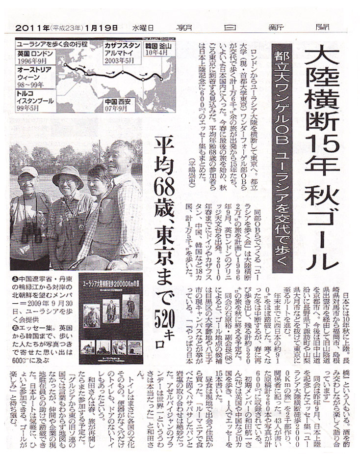 ■朝日新聞朝刊で紹介(2011.1.19)